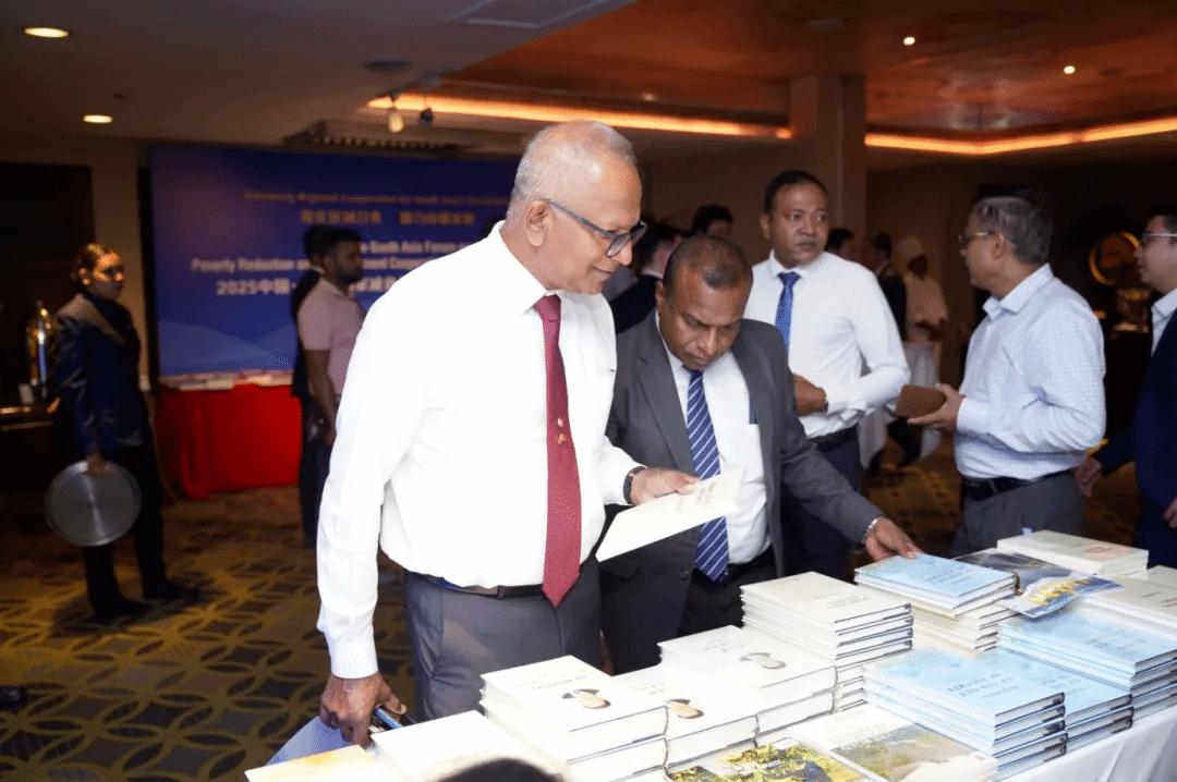 论坛期间,与会嘉宾参观了“2025中国—南亚国家减贫与发展合作论坛主题书展”,斯里兰卡中国社会文化合作协会获赠涵盖中国减贫经验、乡村振兴等主题的图书。
