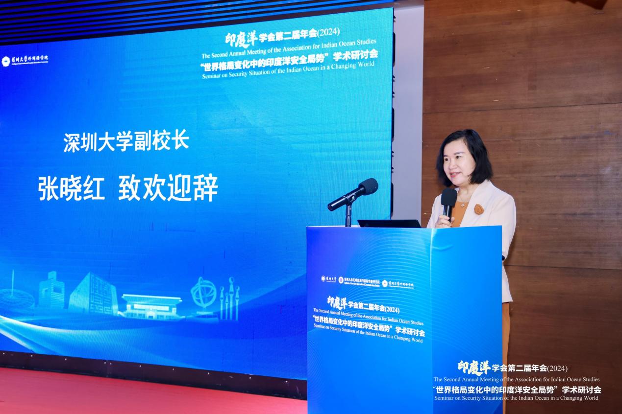 深圳大学副校长张晓红教授代表会议承办方深圳大学在致辞中表示,在深圳,我们看到了“水”哲学与“海上丝绸之路”的完美融合。深圳之水,非独形之美,在其包容,乃城市发展之魂也。深圳,这座年轻而充满活力的城市,恰似一颗镶嵌在南海之滨的璀璨珍珠,以其开放的姿态和创新的基因,续写着海上丝绸之路的新篇章。深圳大学,正是在这样一片知识的海洋,接纳着五湖四海的智慧之流。深圳大学积极参与印度洋治理中,通过跨学科、跨地域、跨文化合作,共同探索可持续发展路径,努力构建和谐海洋命运共同体。