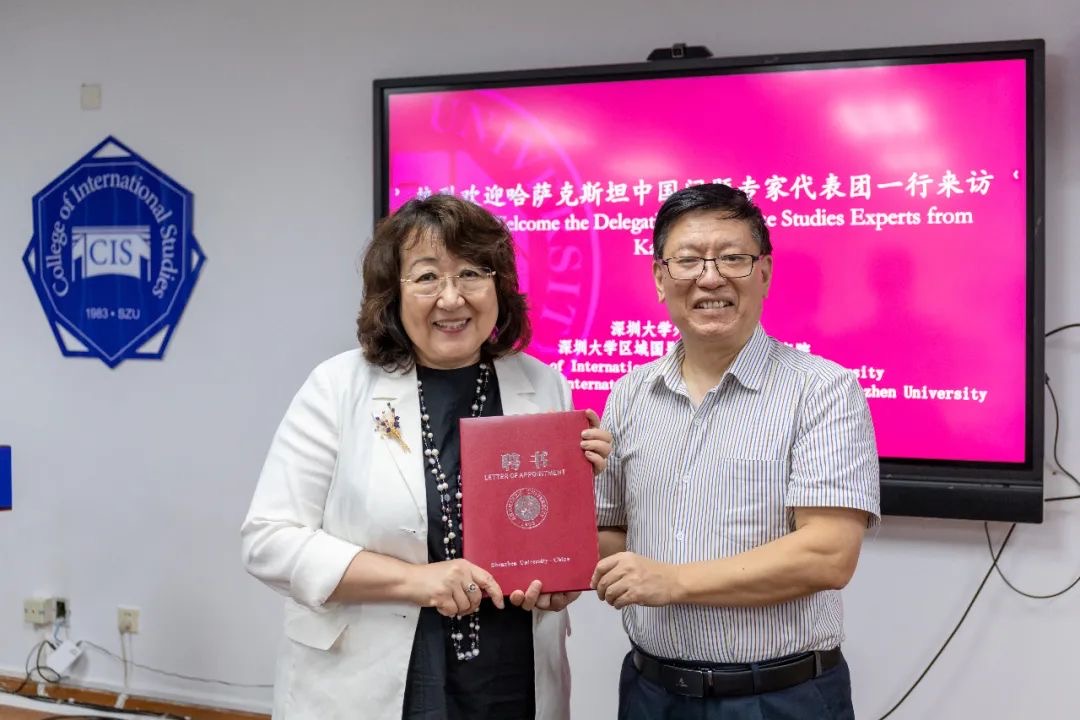 On the morning of June 26, 2024, Prof. Svetlana Kozhirova, Director of the Center for Chinese and Central Asian Studies of the International Academic Complex in Astana, Kazakhstan, and Prof. Taissiya Marmontova of the Faculty of Humanities and Social Sciences of the International University of Astana, and their delegation visited our institute, and Prof. Dai Yonghong, Dean of the Institute of Regional Countries and International Communication, Dean of the School of Foreign Languages, and appointed professor, met with the delegation and presented the appointment of visiting professor to them. Prof. Dai Yonghong, Dean of the Institute of International Communication, Dean of the School of Foreign Languages and Distinguished Professor, met with the delegation and presented the certificate of appointment of visiting professor to Svetlana Kozhirova.